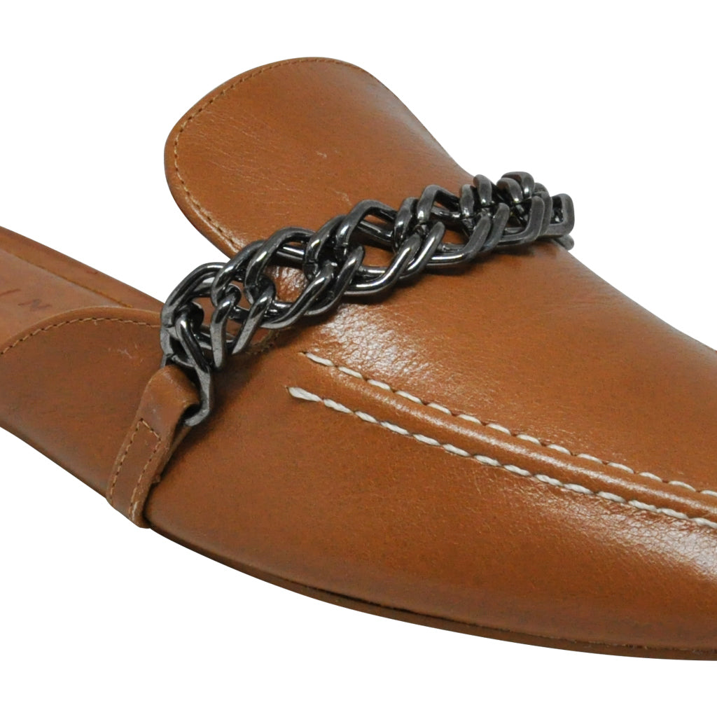Mule Mel Lia Line Couro com Corrente e Salto 1,8cm
