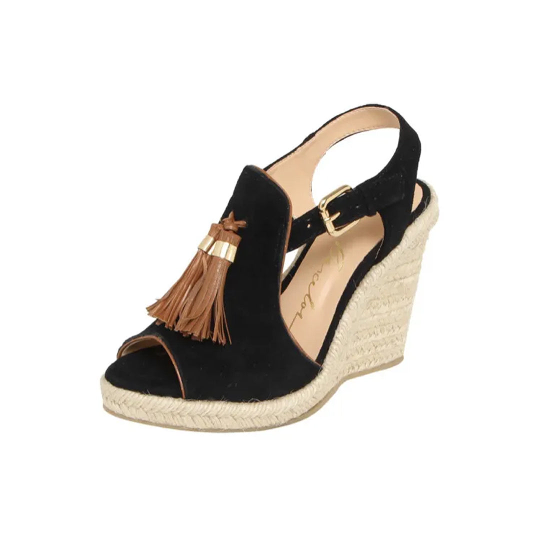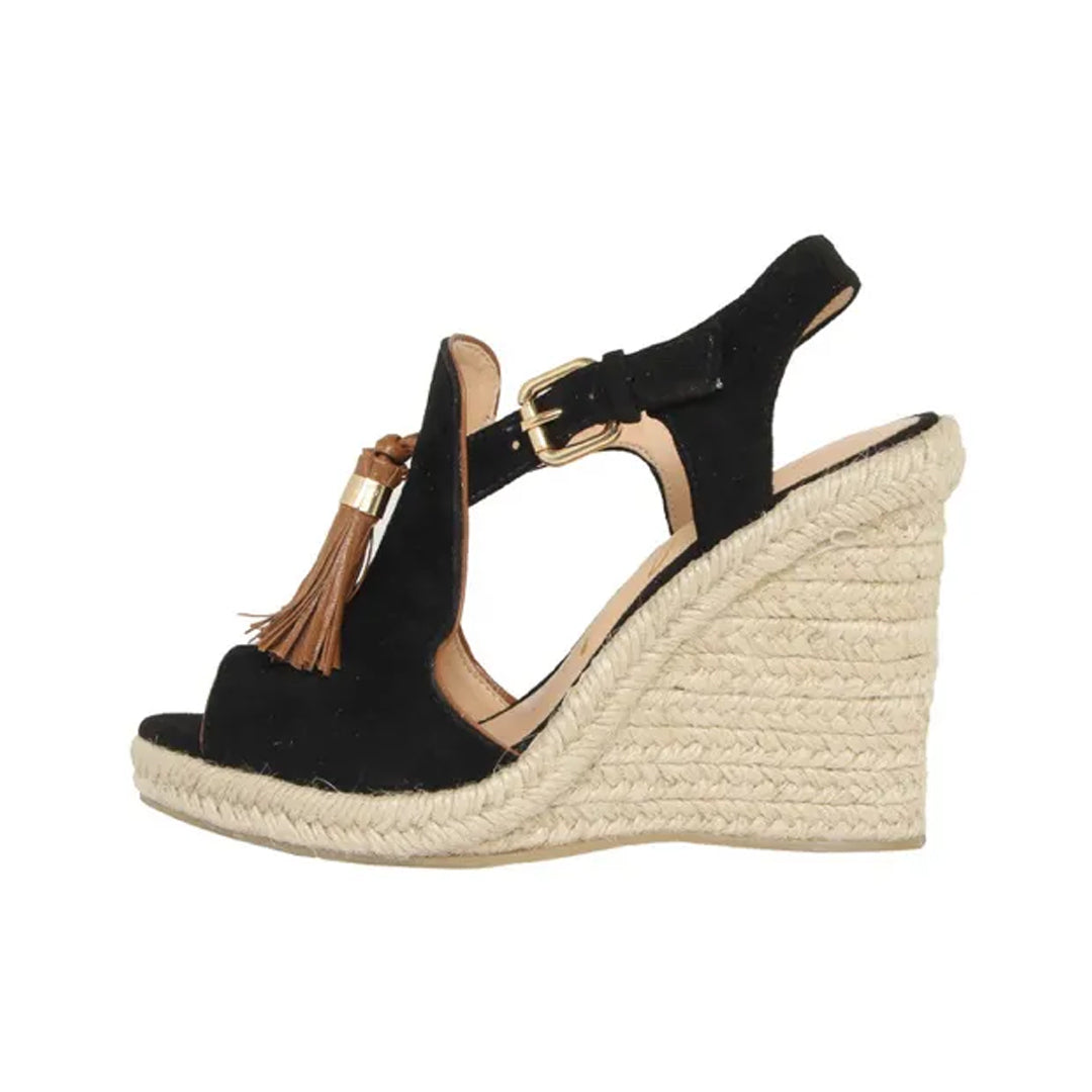 Sandália Anabela com Salto Em Camurça Preto Luiza Barcelos