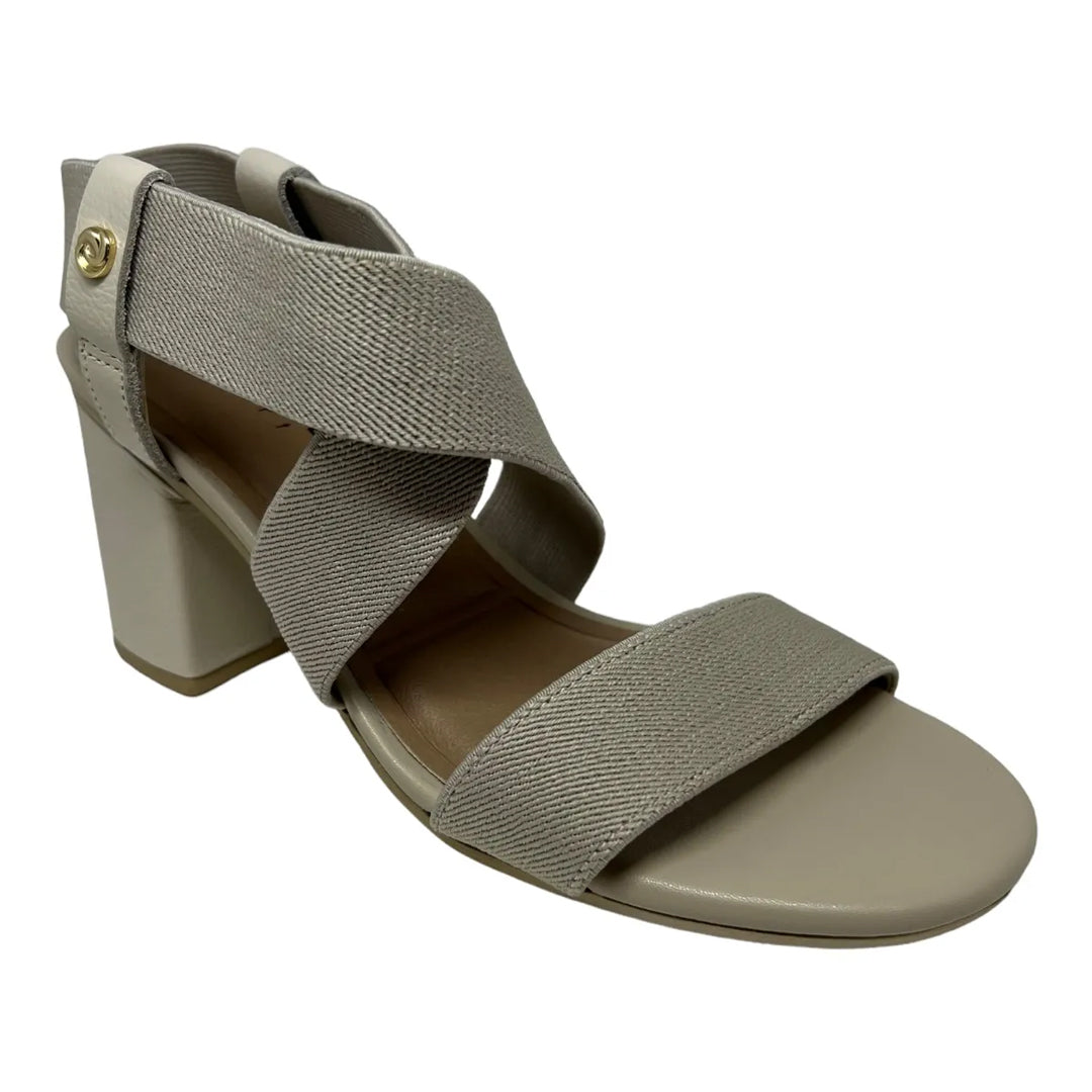 Da linha Confort, essa sandália com salto quadrado de 7 cm combina delicadeza e estabilidade com um toque moderno. Suas tiras de tecido elástico moldam-se perfeitamente ao pé, garantindo um calce confortável e seguro. Ideal para o dia a dia elegante ou momentos especiais com praticidade.