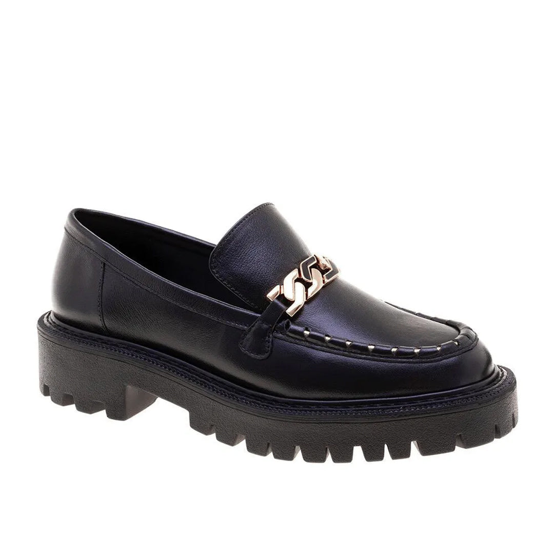 Loafer Couro Max Corrente Lia Line com Solado Tratorado 3cm
