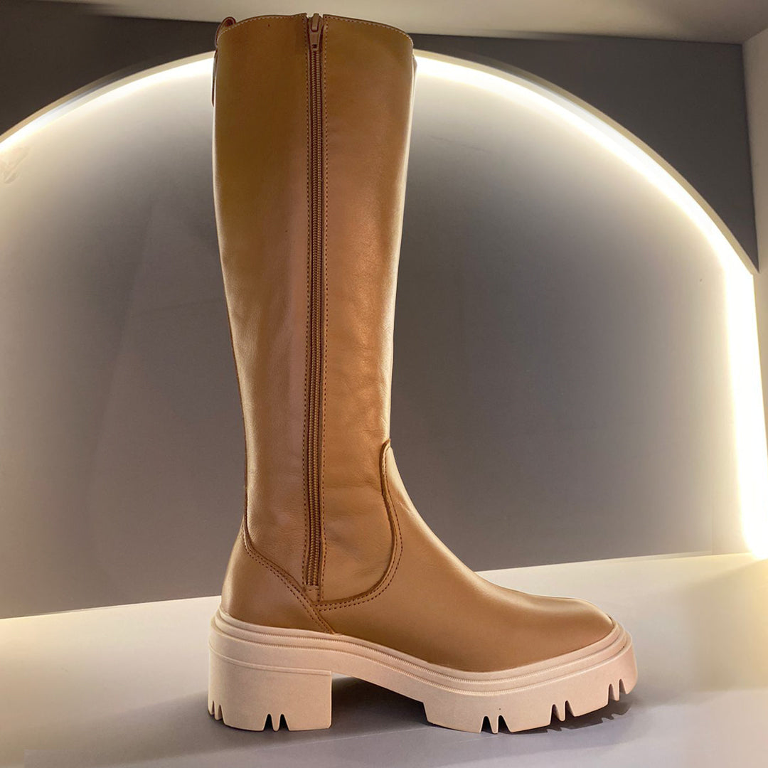Mocassim em Couro Bege com Solado Lia Line